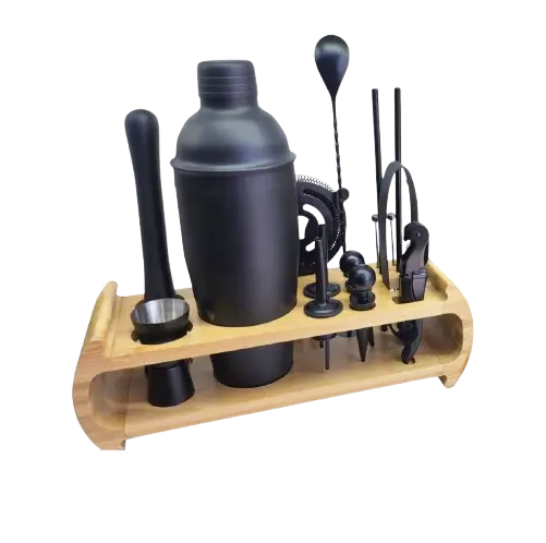 هدیه ای غیرقابل انکار برای دوستداران موکتل: ست بارتندینگ درجه یک به اضافه یک استند چوبی خوش تراش، هر دو با هم در یک جعبه برای یک هدیه درجه یک بسته بندی شده اند.